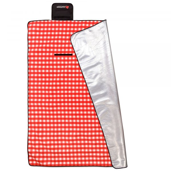 The blanket is very easy to fold, it takes up very little space and the sewn-on handle makes it easy to carry.